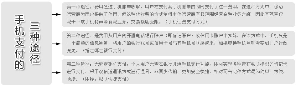 中國作為世界上最大的移動(dòng)市場,手機(jī)用戶已經(jīng)突破了9億,有著巨大的發(fā)展?jié)摿?。不過有專家指出,全產(chǎn)業(yè)還處于初級(jí)階段,存在著付費(fèi)步驟繁瑣以及安全隱患等瓶頸。如何將手機(jī)支付實(shí)質(zhì)應(yīng)用于日常的生活中已成為未來發(fā)展的重點(diǎn)。