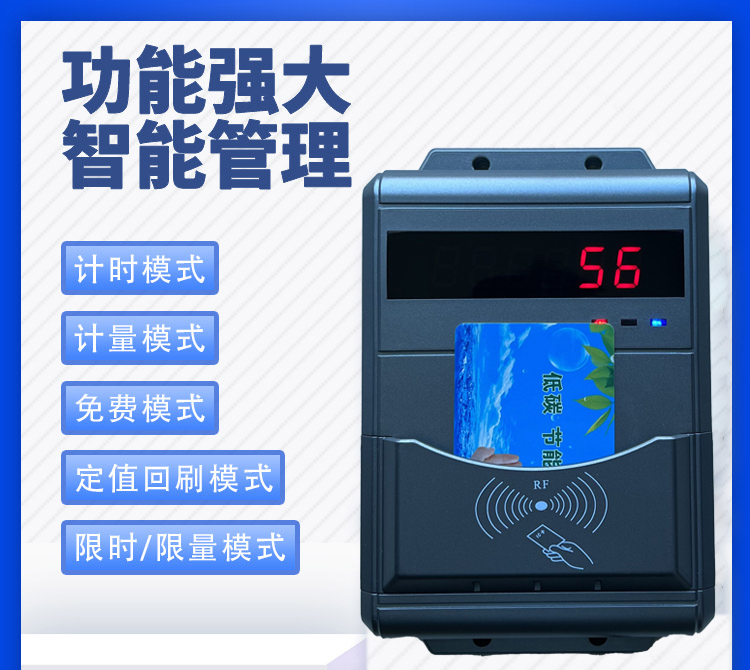 產(chǎn)品簡介: 淋浴插卡限時器 洗澡扣費控水器 澡堂打卡機 支持消費卡設(shè)置不同的組別,不同級別的消費卡可以設(shè)置成不通用,但可以使用同一個充值機來充值,方便管理使用更人性化。 6位高亮度LED數(shù)碼顯示,可實時動態(tài)顯示卡內(nèi)余額,更適合室外強光線下使用。 采用進口法拉電容的優(yōu)化電子線路設(shè)計,確保任何情況下突然斷電都能安全地關(guān)閉閥門。 采用全封防水設(shè)計,電子控制和執(zhí)行機構(gòu)均進行防水密封處理, 適合浴室、澡堂、公寓等高濕度及各種惡劣的環(huán)境使用。確保產(chǎn)品具有更高穩(wěn)定性、耐用性。