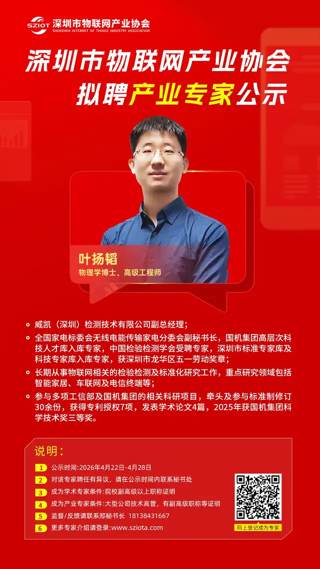 關(guān)于聘請(qǐng)葉揚(yáng)韜先生為深圳市物聯(lián)網(wǎng)產(chǎn)業(yè)協(xié)會(huì)產(chǎn)業(yè)專(zhuān)家的公示