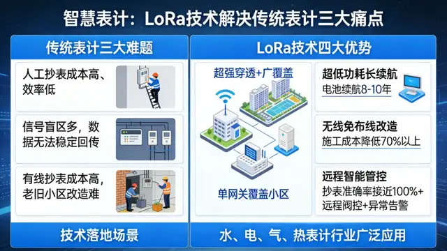 一、智慧表計:告別人工抄表,解決 “入戶難、覆蓋差、續(xù)航短” 痛點