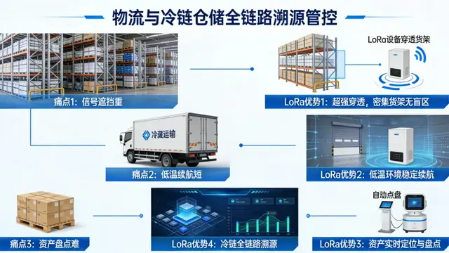 七、物流與冷鏈倉儲:全鏈路溯源管控,解決 “信號遮擋重、低溫續(xù)航短、資產盤點難” 痛點