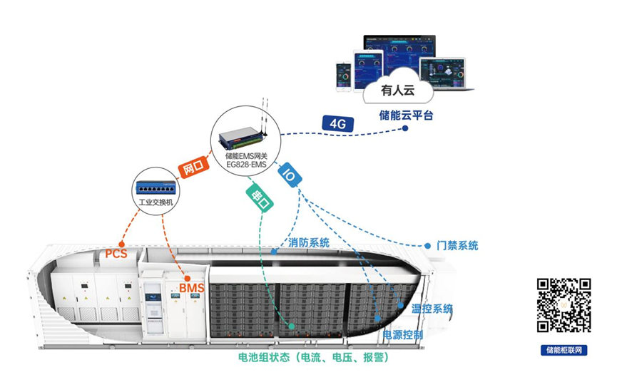 工控機(jī)EG828-EMS可作為儲能艙核心控制器,邊緣采集BMS、PCS、門禁、消防溫度等海量參數(shù),MQTTS對接EMS系統(tǒng)。